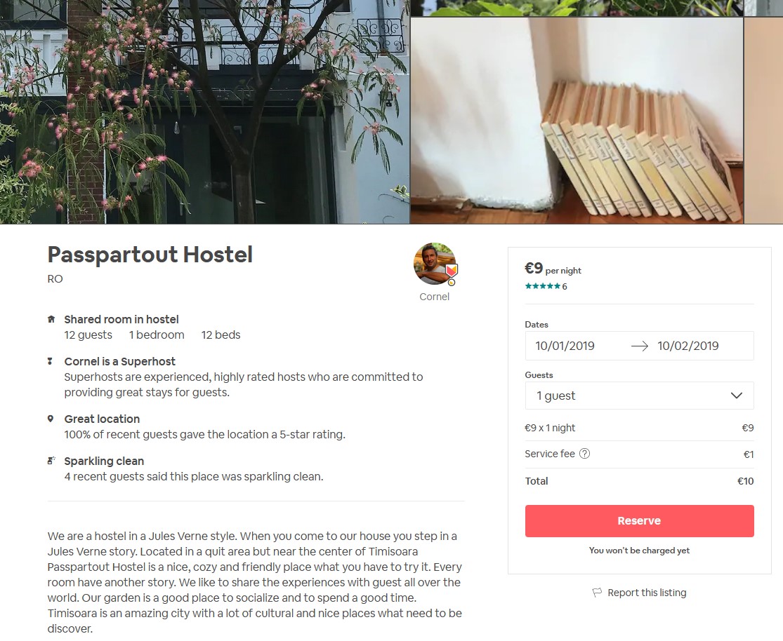 Am făcut selecția doar printre gazdele superhost, neluând în considerare toate apartamentele ci doar cele recomandate de ceilalți membri ai rețelei AirBnb. Căutarea am făcut-o în toate ipostazele pentru noaptea de 1/2 octombrie 2019. AirBnB este un site de rezervari de case și camere în întreaga lume, devenind lider în segmentul hotelier online.
