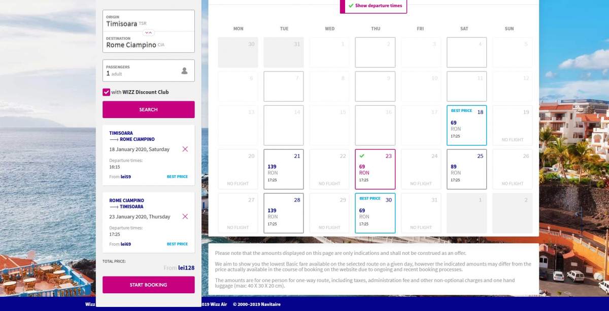 Companie : Wizzair Tip zbor : direct Perioada : 18 – 23 ianuarie 2020 Durata zbor : 80 minute