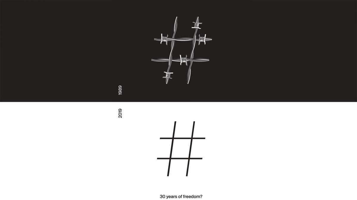 Bannerul prezintă motivul libertății prin alăturarea celor doi ani semnificativi în acest moment – 1989 și 2019. Libertatea are multe înțelesuri și substraturi, simplificarea acestui concept fiind dificilă, însă alegerea unui singur semn poate oferi un sens înțelegerii mesajului – comunicarea, libertatea de exprimare sau libertatea de a fi așa cum alegi să fi.